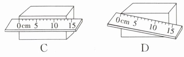 5. 使用厚刻度尺测量木块的长度,下列选项的四种方法中,操作正确的是(