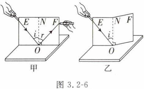 。(3)入射光沿 $EO$ 射向 $O$ 点,经平面镜反射后,沿 $OF$ 射出,$i$ 是