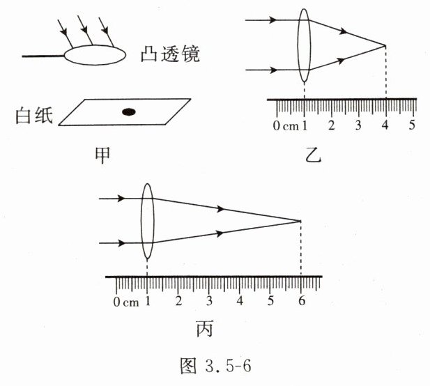 。(4)凸透镜的焦距是表示凸透镜会聚光线能力的一个物理量。两个直径相同的凸透镜,它们的焦距分别如图 3.5-6 乙、丙所示,那么焦距为
