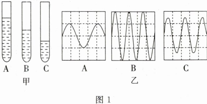试管发出声音的音调最高。图1乙所示的波形中,音调最低的是图A