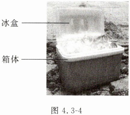 【查阅资料】冷藏箱主要由冰盒、用三层材质组合而成的箱体组成(如图4.3-4所示),它们共同起到冷藏保温的作用。使用时,将冷冻过的冰盒放入箱体,并把要保存的物品放入箱中,关闭箱盖,就能有较好的冷藏效果,且便于携带。