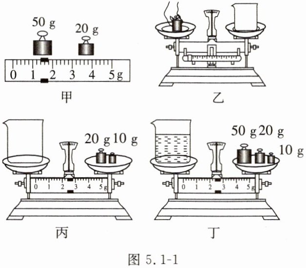 ,直至天平平衡。(6) 由图 5.1-1 丙、丁可知烧杯的质量为