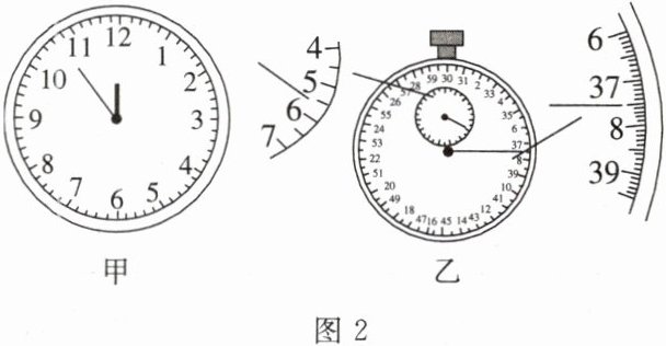 2. 图2是常用的测量时间的工具,其中图甲是石英钟,它的分度值是