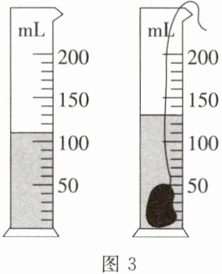 (3)甲同学实验时的情景如图3所示,则该石块的体积是