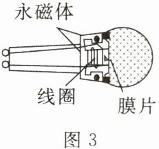 3. 图3是动圈式话筒内部结构图,对着话筒说话时,声带