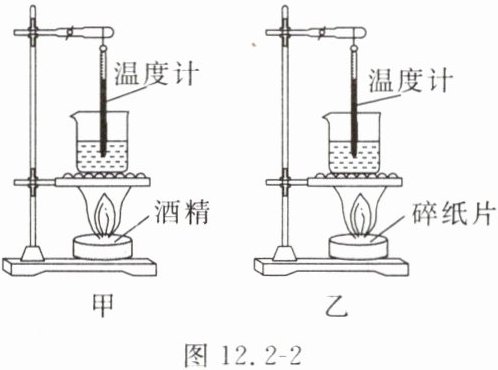 11. 小明采取图12.2-2所示的方式探究相同质量的不同燃料燃烧时放出的热量是否相同。