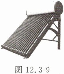 10. 为了节约能源,很多家庭都安装了太阳能热水器,如图12.3-9所示。已知某太阳能热水器储水箱内盛有50 kg的水,在阳光照射下,水的温度从20℃升高到59℃,已知$c_{水}= 4.2× 10^{3}\ J/(kg\cdot^{\circ}C)$。