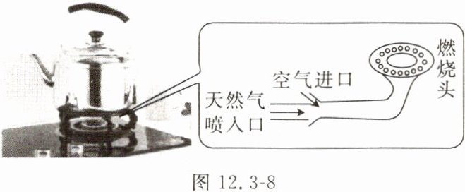 9. 图12.3-8是用燃气灶烧水的情境和该燃气灶灶头的示意图。