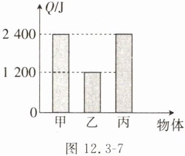 8. 甲物体的质量为2 kg,乙、丙两物体的质量均为1 kg,三个物体的温度均升高1℃,吸收的热量如图12.3-7所示。下列说法正确的是(