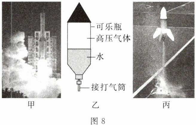 (3)气压足够时,打开阀门,水向下喷出,如图丙所示,水火箭向上发射。使水火箭上升的施力物体是