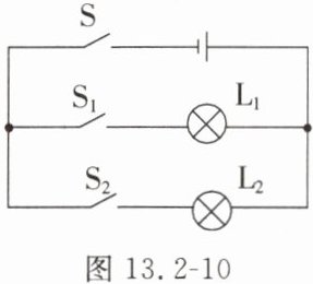 11. 在连接并联电路的实验中,小红同学用两个不同的小灯泡连接了如图13.2-10所示的电路。