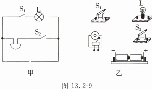 9. 根据图13.2-9甲所示的电路图,请用笔画线代替导线连接图13.2-9乙中的实物电路。