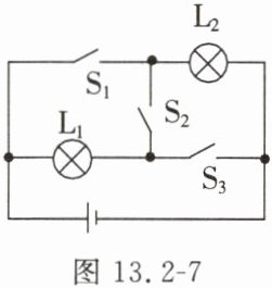 7. 在图13.2-7所示的电路中,要使$L_1、$$L_2$串联,应闭合的开关是
