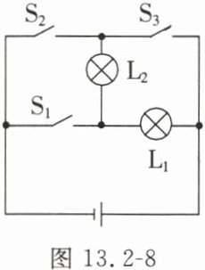 8. 对图13.2-8所示电路进行分析,当$S_2、$$S_3$闭合$,S_1$断开时,电路处于