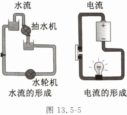 8. 类比是重要的科学研究方法。关于图13.5-5所示的类比水流和电流的形成原因,下列说法不正确的是(