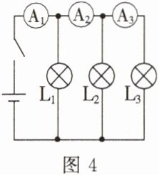 4. 如图4所示,已知电流表$A_3$的示数为0.3 A,电流表$A_2$的示数为0.7 A,通过灯$L_1$的电流为0.6 A,那么通过灯$L_2$的电流是