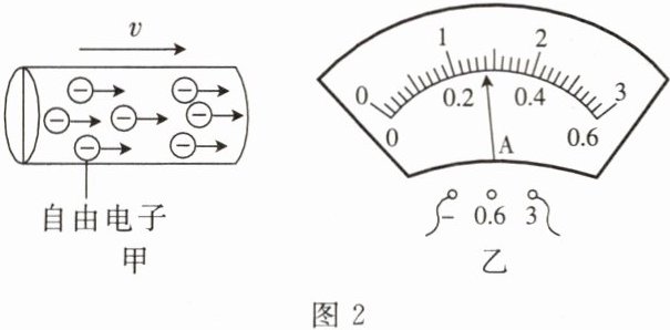 2. 图2甲所示的是电路中某段导体内自由电子定向移动的方向,由此可知通过此段导体的电流方向向