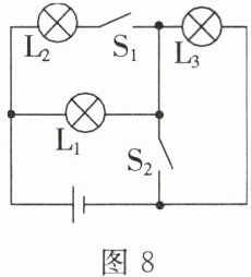 D.当开关$S_1$断开、$S_2$闭合时,灯$L_3$被短接,只有灯$L_1$能发光