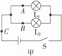 (选填“A”“B”或“C”)点的电流。接下来小雨想继续测量通过灯泡$L_1$的电流,请你在图12丙中把电路改接好(在改动的导线上打“×”)。 (2)下表是小雨同学在实验中收集到的数据,其中