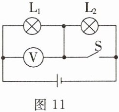 (2)当S断开时,电压表的示数为$1.5 V,L_1$和$L_2$是串联还是并联?电压表测量的是什么电压$?L_2$两端的电压是多少?