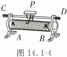 7. 如图 14.1-4 所示,若要滑动变阻器接入电路中的电阻值变小,则以下操作可行的是(