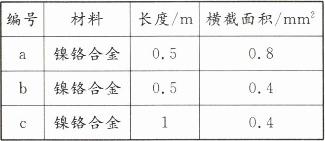 | 编号 | 材料 | 长度/m | 横截面积$/mm^2 $|