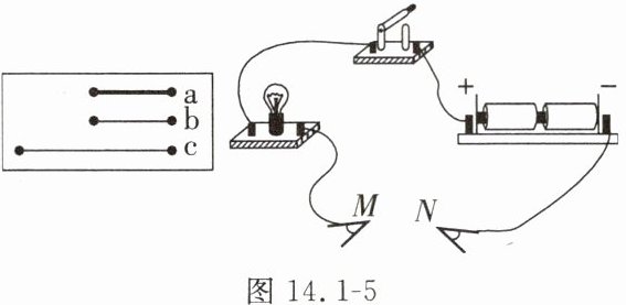9. 某实验小组在探究影响导体电阻大小的因素的实验中,利用图 14.1-5 所示的电路探究导体电阻跟它的材料、长度、横截面积是否有关。
