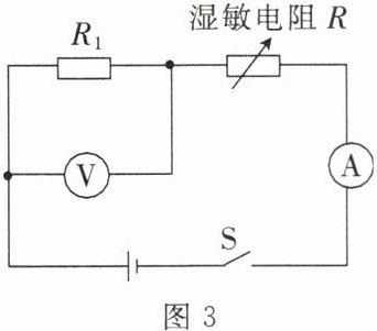 6. 用石墨烯制成的湿敏电阻,其阻值会随含水量的升高而增大。如图3所示,这是检测植物叶片含水量的电路,电源电压不变,将湿敏电阻R附着在叶片上,当叶片含水量升高时,电流表的示数