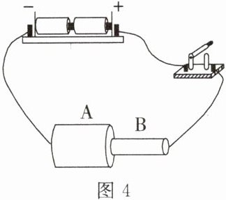 7. A、B是由同种材料制成的长度相同、横截面积不同的两段导体,如图4所示,将它们串联后接入电路中,闭合开关后,通过A、B的电流的关系为$I_{A}$