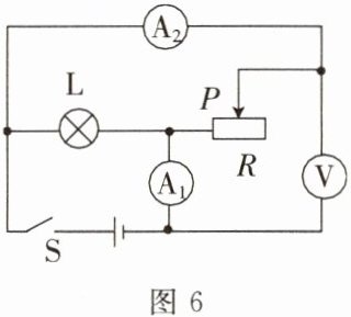10. 如图6所示,电源电压保持不变。开关S闭合,滑动变阻器的滑片P由中点向右滑动的过程中(