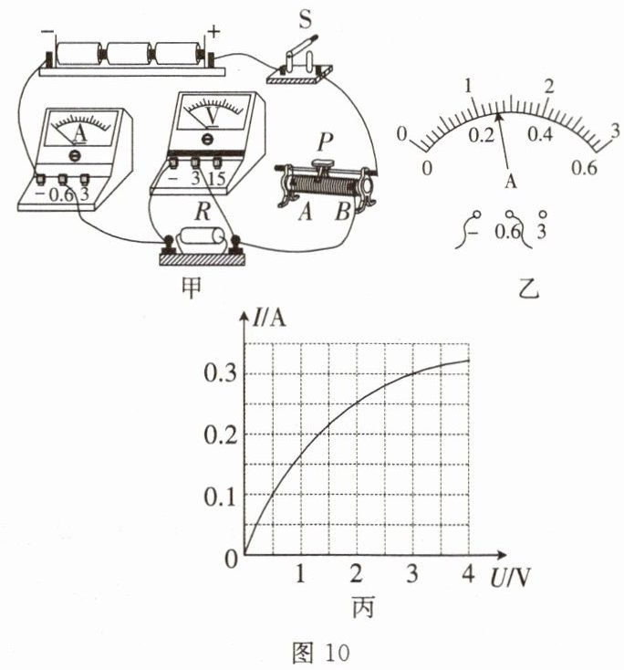 。(3) 排除故障后,闭合开关,移动滑片P,电压表示数为2.6 V时,电流表示数如图10乙所示,则测得电阻R的阻值为