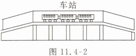 4. 图11.4-2是某轻轨站的设计方案,与站台连接的轨道有一段小斜坡,列车靠惯性进站时,列车的