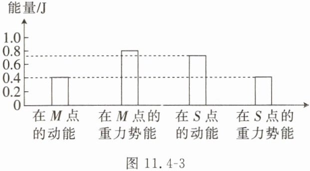 6. 一个球竖直向上运动,并落回地面,这个过程中球先后经过M、S两点。球在这两点的动能和重力势能如图11.4-3所示,则球在M点的(