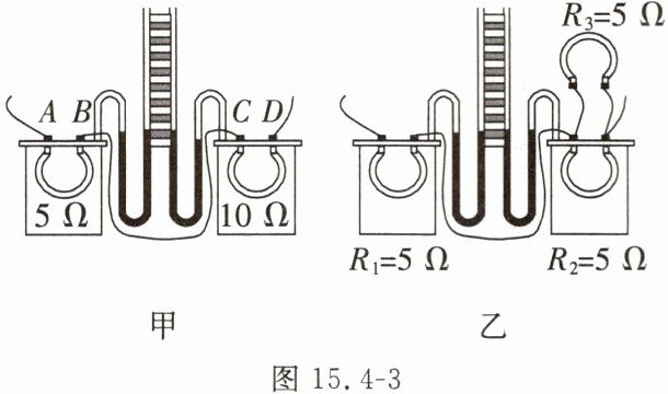 6. 小明在“探究电流通过导体时产生的热量与哪些因素有关”实验中,用图15.4-3所示的两套装置进行实验探究。