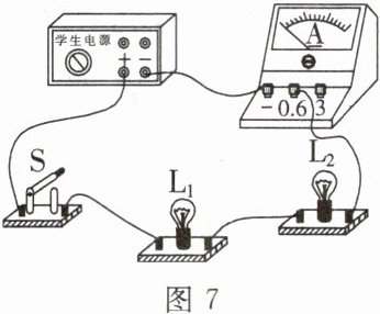 11. 如图7所示,标有“4.8 V 0.5 A”字样的灯泡$L_{1}$和标有“6 V 0.35 A”字样的灯泡$L_{2}$连接成串联电路,电源电压可调节。不考虑温度对灯泡电阻的影响,闭合开关S,使电源电压从0 V逐渐增加,下列说法正确的是(