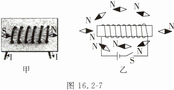 7. 某实验小组做“探究通电螺线管外部磁场的分布”实验,如图16.2-7所示。