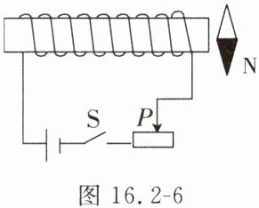(6)在螺线管外部A、B两处放置小磁针,如图16.2-8所示,闭合开关,发现A处小磁针发生偏转,而B处小磁针不偏转。B处小磁针不偏转的原因可能是