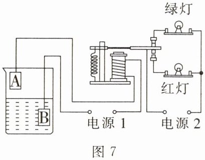 7. 某学校为了培养学生的科学素养,组织科技创新大赛,小双在比赛中制作了水位自动报警器,原理如图7所示。当水位升高,触碰到金属块A时,