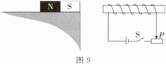 9. 如图9所示,闭合电磁铁开关S,条形磁铁静止在水平桌面上。下列判断正确的是(