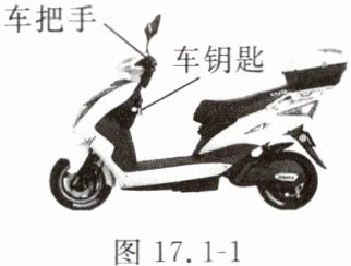 5. 图17.1-1所示为人们所喜爱的电动自行车,它轻便、节能、环保。只要将车钥匙插入锁孔并旋转一下,车子就通电了。