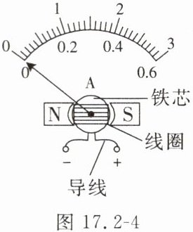 6. 图 17.2-4 是电流表的内部结构图,处在磁场中的线圈中有电流通过时,线圈会带动指针一起偏转。关于该现象,下列说法正确的是(