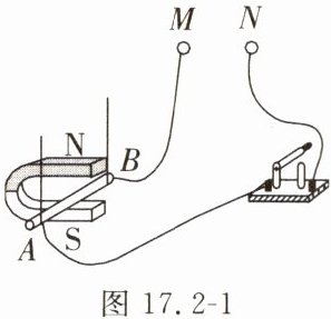 2. 用图 17.2-1 所示的装置探究磁场对电流的作用,需要在 M、N 两接线柱间接入