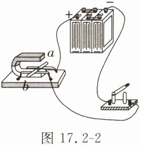 3. 图 17.2-2 所示的是检验磁场对通电导体作用力的实验装置,当导体 ab 中有某方向的电流通过时,它受到的磁场力方向向左。