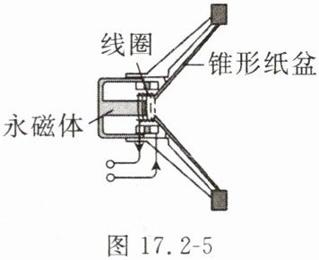 7. 图 17.2-5 是扬声器(喇叭)的结构图。当扬声器的线圈中通有携带声音信息的时刻变化的电流时,线圈会在永磁体的作用下带动锥形纸盆振动发声。下列说法正确的是(