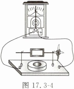 5. 图17.3-4所示的是自制交流发电机模型,风车转动,线圈在磁场中做