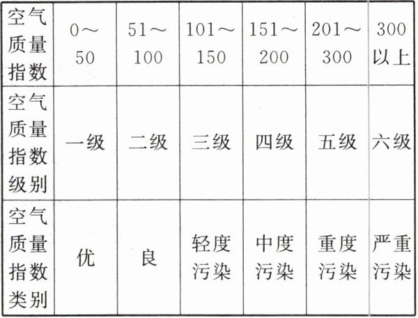 (3) 根据空气质量指数对空气质量分级如下表所示: