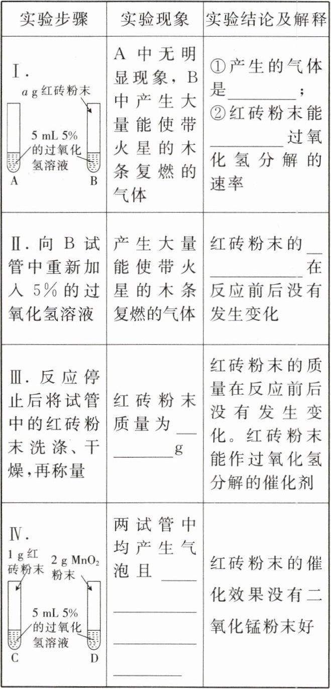 【提出问题】红砖粉末能否作过氧化氢分解的催化剂?如果能,效果如何?