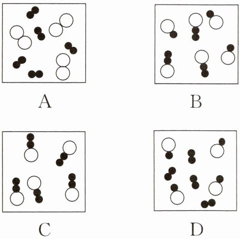 3. 下图中“○”和“●”表示两种质子数不同的原子,其中能表示由两种化合物组成的混合物的是(