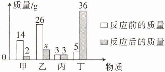 7. 甲、乙、丙、丁四种物质在反应前后的质量关系如下图所示。