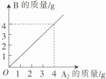 解:由图可知,反应中A₂与B的质量比为4g:4g=1:1。